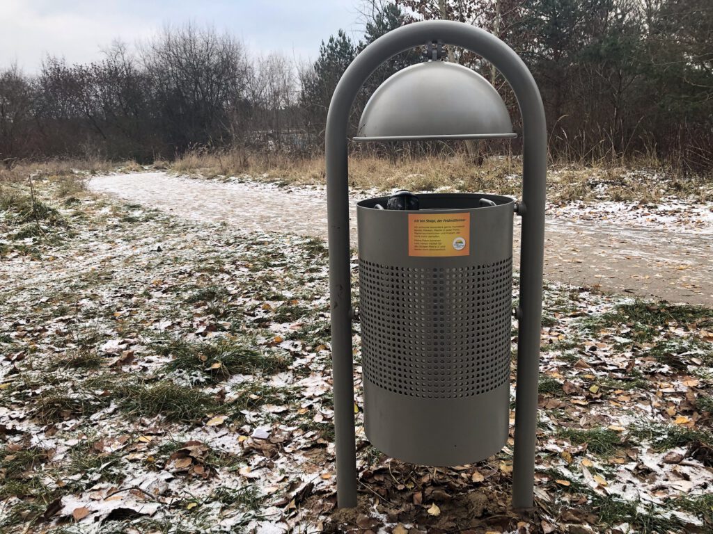 Das Pilotprojekt hat sich als sehr erfolgreich erwiesen, denn die Nutzung der Mülleimer durch die Besucher*innen der Stolper Feldflur ist sehr gut angelaufen. Die Mülleimer werden durch Menschen aus unserem Verein und Frohnau je nach Standort 1–2 Mal/Woche geleert.